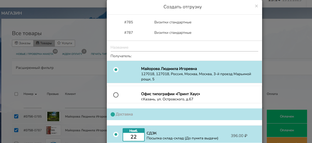 Напоминаем о полезном инструменте для вашей типографии — модуле «Отгрузки».