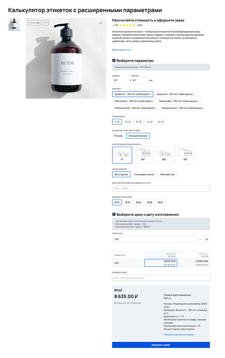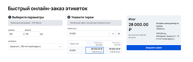— Да, и пробел в цифровизации услуг существует. Мы проанализировали порядка двухсот сайтов российских производителей этикеточной продукции и ни на одном из них не увидели возможность онлайн-заказа и автоматического расчета стоимости рулонной цифровой этикетки с учетом индивидуальных параметров заказчика. А растущий спрос на малые тиражи этикеток (3000–10 000 шт.) со стороны малого бизнеса, который мы ранее идентифицировали как перспективный тренд, нашел полное подтверждение в реальной клиентской базе нашей платформы.